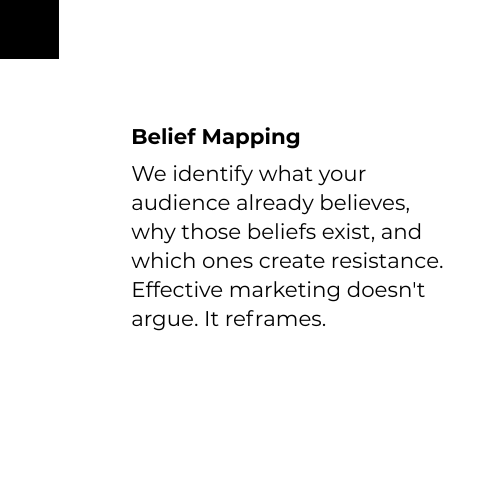 We don't build marketing campaigns. We build belief systems that align audience values with business growth—through strategy, psychology, and systems that scale.